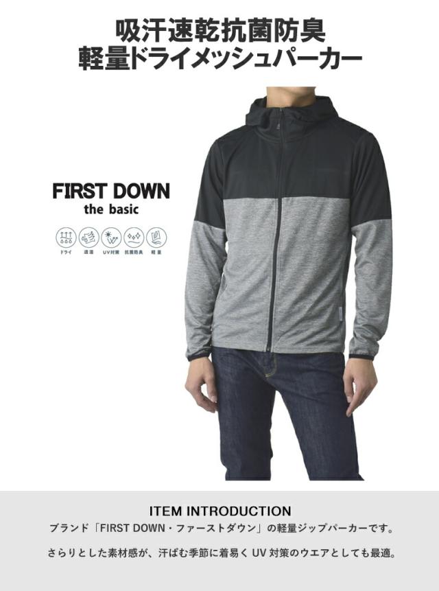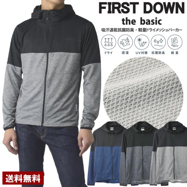 ポイント10%★FIRSTDOWNファーストダウン メンズ パーカー 吸汗速乾 ドライメッシュ 透湿 抗菌防臭 UV対策 軽量 フルジップパーカー【A1Z】【パケ1】