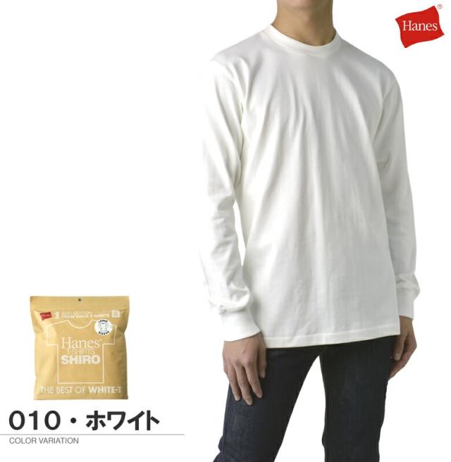 Tシャツ 無地 長袖 白 白T 7オンス Hanes ヘインズ SHIRO クルーネック コットン100% HM4-A201 正規品【D1G】【パケ1】【A】