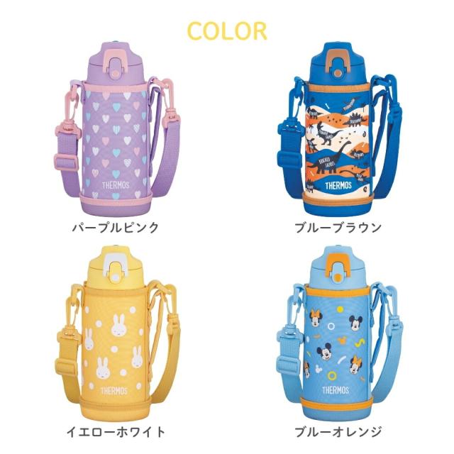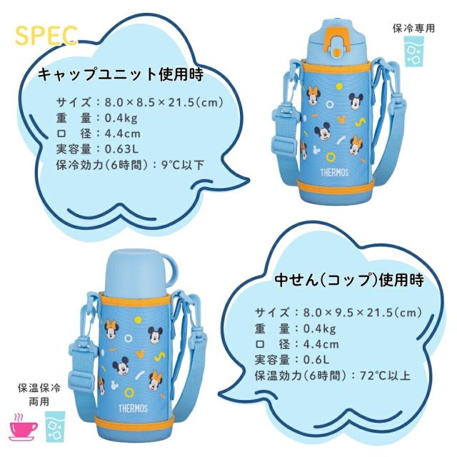 | 商品名: サーモス 真空断熱2ウェイボトル 水筒 0.6L FJJ-602 保冷 ワンタッチ コップ飲み 直飲み ポーチ付き 食洗機対応 子供 キッズ 小学校 幼稚園 保育園 -商品説明- 真空断熱2ウェイボトル/FJJ-602 シーンに合わせて多彩な使い方ができます。 人気のミッキー&ミニーのついた、直接飲めるスポーツボトル(保冷専用)、コップ付きボトル(保温・保冷対応)の2通りで使える2ウェイボトル。 食洗機OK ボトル本体も洗えます。 飲みやすい飲み口 飲みものの流れを良くする空気穴を設けたので、飲み口をくわえても一気に飲める。 ワンタッチ・オープン ワンタッチでオープンするキャップユニットはロックリング付き。 フルオープン中せん 中せんは、注ぎやすく、洗いやすい衛生的なフルオープン型。 お名前スペース付き 本体・ポーチにはお名前スペースがあります。 ※製品への書き込みは油性ペンをご使用ください。 ストラップ付きハンディポーチ 取り外しできるストラップ。洗濯機OK。コップを開けやすいすべり止め付き。 スポーツ飲料OK ※温めたスポーツ飲料は入れないでください。 -特徴・品質- ・直飲み&コップ飲みの2WAY仕様。 ・ワンタッチオープンで簡単に水分補給可能(ロックリング付き)。 ・真空断熱構造で長時間の保温・保冷が可能。 ・握りやすく飲みやすい空気穴付き飲み口。 ・フルオープン中せんで注ぎやすく、洗いやすい設計。 ・スポーツ飲料OK(※温めたスポーツ飲料は不可)。 ・本体&ポーチに名前を書けるスペース付き。 ・ストラップ付きポーチは取り外し可能で洗濯機で洗える。 -仕様- ・寸法:約幅8.0m×奥行9.5cm×高さ21.5 cm※1 約幅8.0m×奥行8.5cm×高さ21.5 cm※2 ・重量:約0.4kg ※1 ※2 ・実容量:0.6L ※1/0.63L ※2 ・保温効力(6時間) :72℃以上 ※1 ・保冷効力(6時間) :9℃以下 ※2 ・口径:約4.4cm ・中せんの種類:FJJ中せん ・カラー:パープルピンク、ブルーブラウン、イエローホワイト、ブルーオレンジ ※1 中せん使用時 ※2 キャップユニット使用時 ※保温効力とは、室温20℃±2℃において製品に熱湯を中せん下端まで満たし、湯温が95℃±1℃のときから中せんとコップを付けて縦置きにした状態で6時間放置した場合におけるその湯の温度です。 ※保冷効力とは、室温20℃±2℃において製品に4℃以下の水をキャップユニット下端まで満たし、水温が4℃±1℃のときからキャップユニットを付けて縦置きにした状態で6時間放置した場合におけるその水の温度です。 ※実容量とは、中せん下端、キャップユニット下端までの容量です。ご使用の際は、取扱説明書をご確認いただき適正な量を入れてください。 ※本体寸法(ポーチを含まず)は0.5cm単位、本体重量(ポーチを含む)は0.1kg単位で表示しています。 -機能- ・ワンタッチオープンで直飲み可能(保冷専用)。 ・コップ付きで温かい飲み物も飲める(保温・保冷対応)。 ・空気穴付き飲み口でスムーズな飲み心地。 ・全パーツ食洗機対応でお手入れ簡単。 ・名前スペース付きで園や学校での使用に最適。 ・ポーチは洗濯機で洗えて衛生的。 -使用・手入れについて- ・直飲みは保冷専用のため、温かい飲み物は入れないでください。 ・中せん使用時は保温・保冷どちらも可能。 ・スポーツ飲料はOKですが、温めたスポーツ飲料は入れないでください。 ・食洗機対応ですが、塩素系漂白剤の使用は避けてください。 ・ポーチはネットに入れて洗濯機で洗うことをおすすめします。 ・長期間使用しない場合は、しっかり乾燥させてから保管してください。 -注意事項- ・商品の色はできる限り実物に近づけていますが、ディスプレイ設定や撮影条件により色味が異なる場合があります。ご了承ください。 ・ご注文のタイミングや内容により、購入後のキャンセルや修正が制限される場合があります。 ・同時に複数のご注文があった場合、システム上の遅延により在庫がないにも関わらず購入できてしまう場合があります。そのような場合は速やかにメールでお知らせいたします。 |