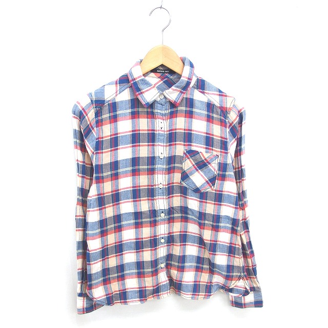 【中古】メイソングレイ MAYSON GREY シャツ ブラウス チェック ステンカラー 薄手 長袖 3 ベージュ ブルー 薄茶 青