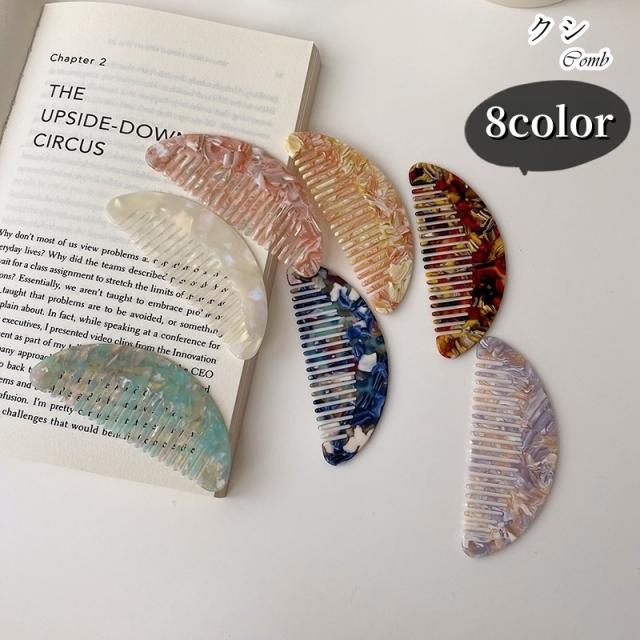 くし 櫛 生活雑貨 ヘアケア用品 ファッション雑貨 半円型 半月型 和風 大理石風 マーブル模様 ツートンカラー モノクロ ピン
