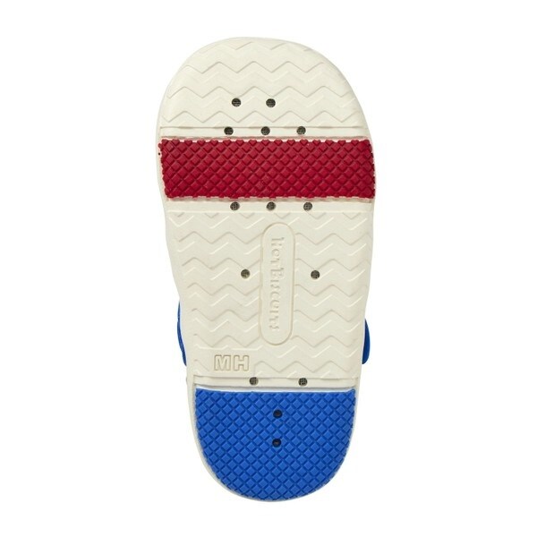 面ファスナーで調節できるので、甲高の赤ちゃんの足にもフィットします。