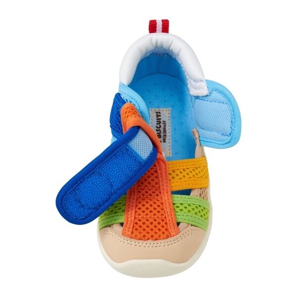 ミキハウス ホットビスケッツの水抜けサンダル。