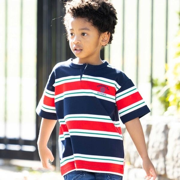ヘンリーネックカノコマルチボーダーTシャツ(110~160cm)