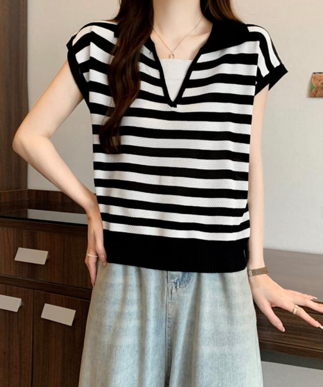 ミニミニストア(miniministore)/ボーダー柄サマーニット フレンチスリーブ