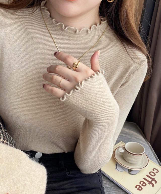 襟や袖のメロウフリルが、レイヤードコーデのアクセントにぴったり
