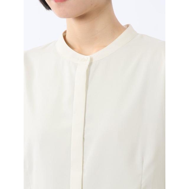 上品に垢抜ける、ロング丈のワンピースです。どちらを前にしても着用可能な前後2WAY仕様、首元をスッキリ見せてくれるバンドカラー、ウエストを絞れる共生地のベルトがポイントになっています。ワンピースとしても羽織りとしても楽しめる、着回し力の高いアイテムです。