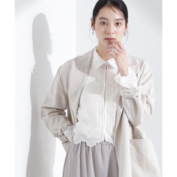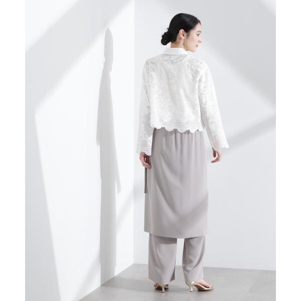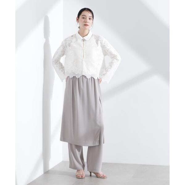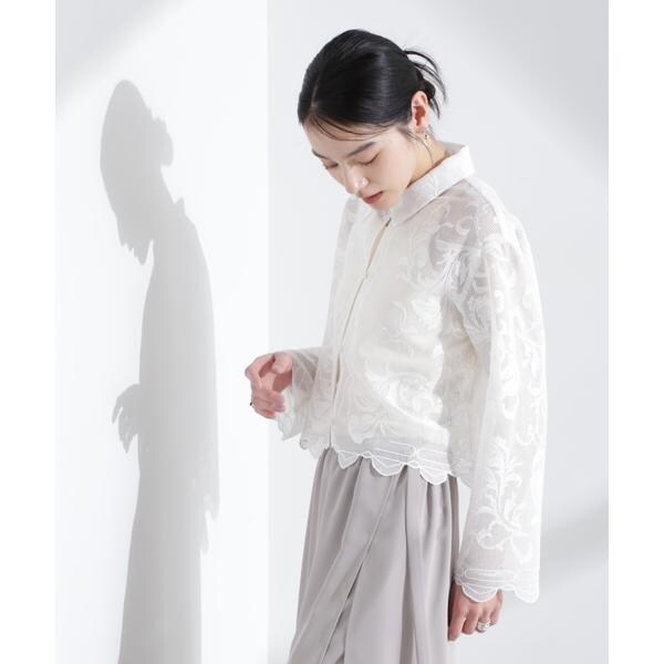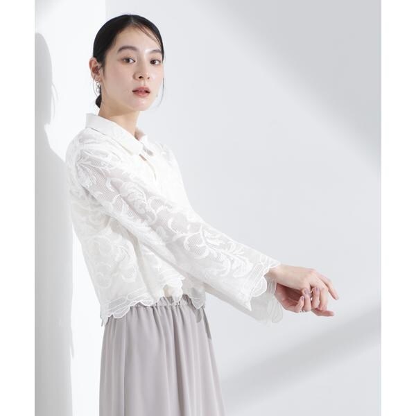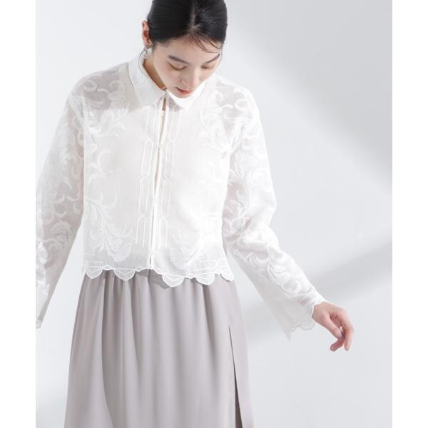 ビンテージ感が香る、ふっくらとした大ぶりの刺繍レース柄シャツ。スタイルアップ効果が期待できるトレンドのクロップド丈で、きちんと感があるのでON/OFFで重宝しそう。