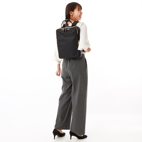 通勤に最適なスクエア型のスリムで機能的なA4サイズ対応のビジネスリュック。