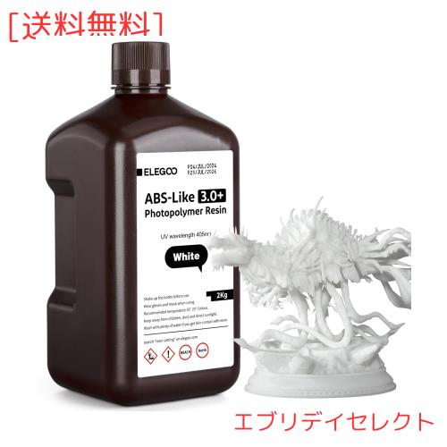◆商品名:ELEGOO ABSライク3.0プラス 3Dプリンター用レジン ホワイト 強化された強度と靭性 高精度 低粘度 LCD/DLP 3Dプリント用405nm UV硬化型フ