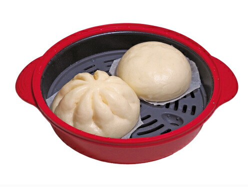 | 電子レンジのマイクロ波で底面の特殊素材が発熱します。マイクロ波を反射するフタをすることでレンジ使用時のように食材のパサつきを抑え全体に熱がいきわたるのでふっくらとした仕上がりになります。加熱加減により食材底面に焼き目が付きます。内側表面は焦げ付きにくいようにフッ素加工されています。 |