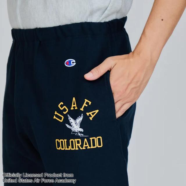 左前腿のプリントはチャンピオンブランドと親和性の高いカレッジ風グラフィックを現代に落とし込んだもので、