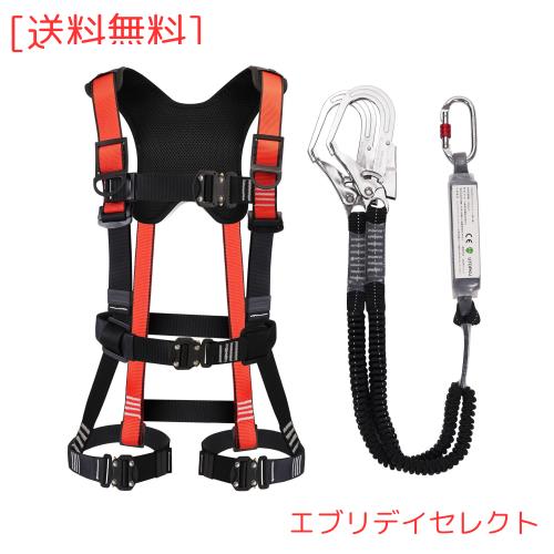[UTOPKU] フルハーネス 安全帯 新規格 セット 脱着簡単 便利 安全 水平型腿ベルト ハーネス サイズ調整可能 腹部と胸と脚ワンタッチバッ