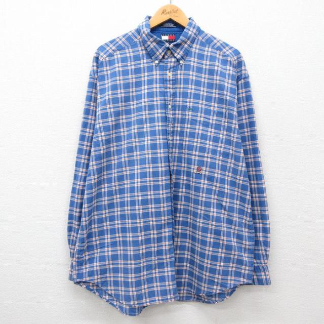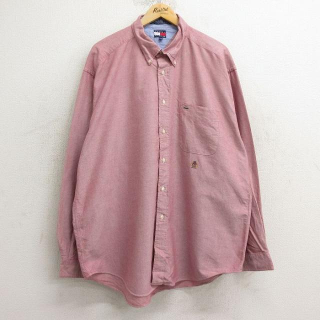 古着 トミーヒルフィガー TOMMY HILFIGER 長袖 ブランド シャツ メンズ 90年代 90s ワンポイントロゴ 大きいサイズ ロング丈 中古 古着