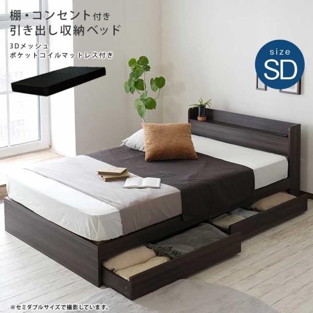 8色から選べる 棚・コンセント付き収納ベッド ブラックマットレスセット セミダブルサイズ RUES【ルース】