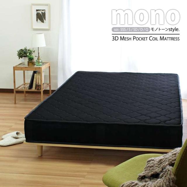 サイド+表面が3Dメッシュ生地仕様で通気性に優れた ポケットコイルマットレス【ブラック(やや硬め)】セットのページです。