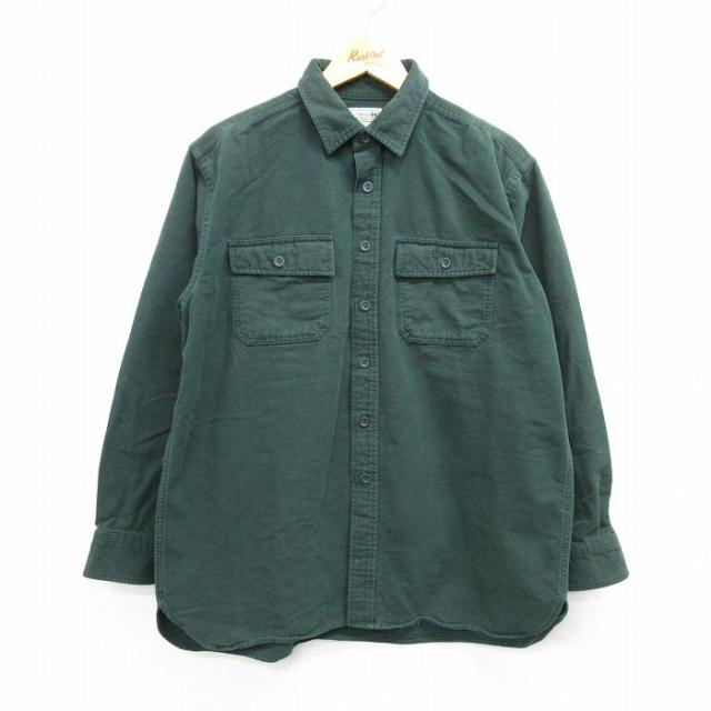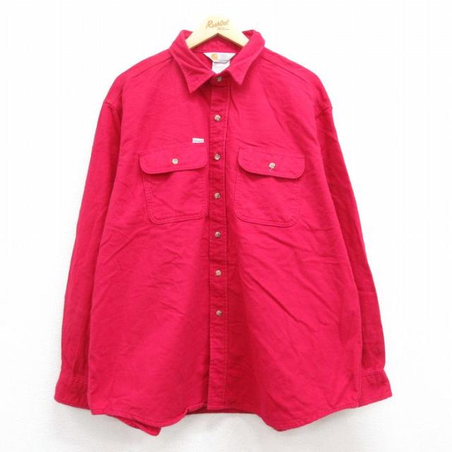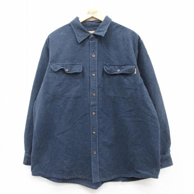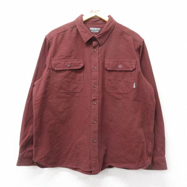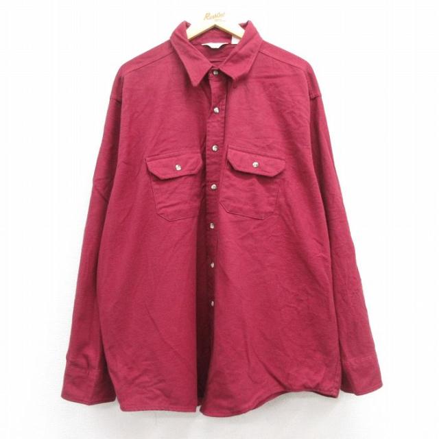 古着 長袖 ヘビー フランネル シャツ メンズ 大きいサイズ コットン エンジ XLサイズ 中古 トップス 中古 古着