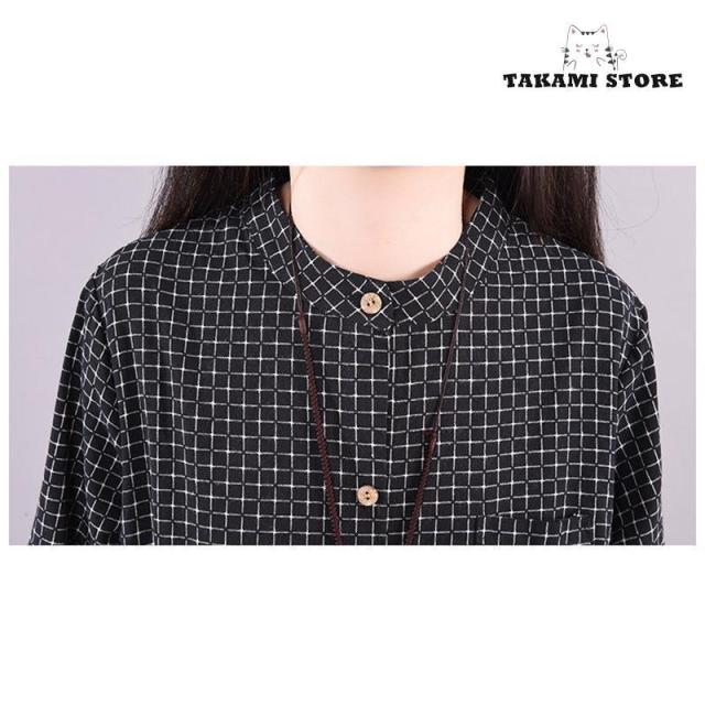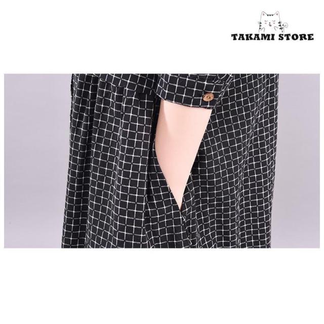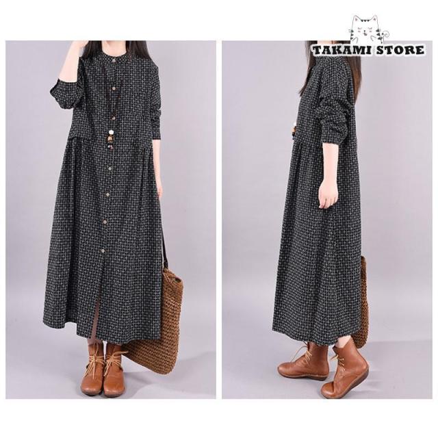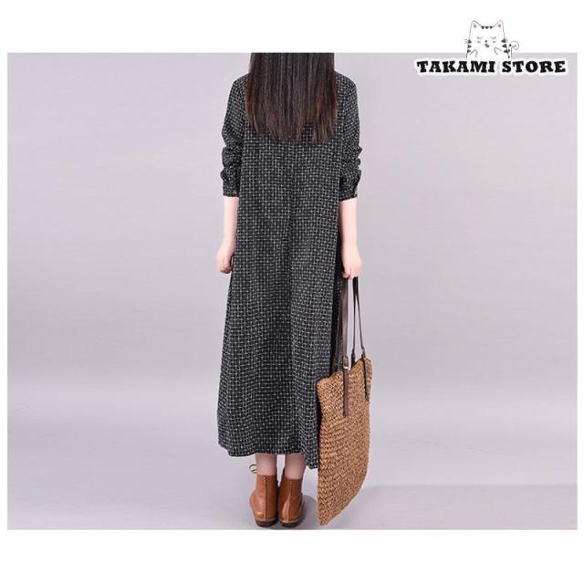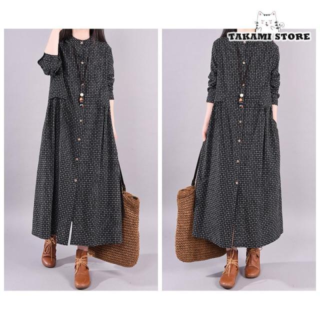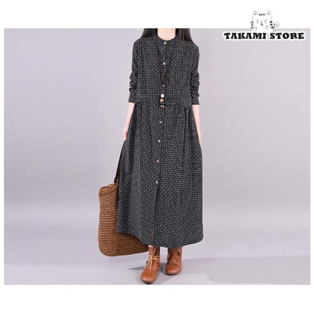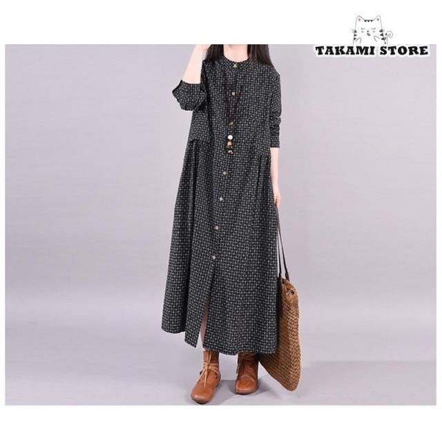 ワンピース シャツワンピース ロングワンピース 秋 レディース チェック柄 マキシ丈 長袖 体型カバー 綿麻 ゆったり 大きいサイズ 春秋 30代 40代 50代 春