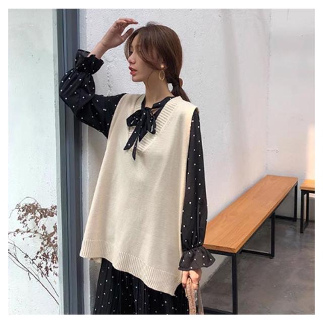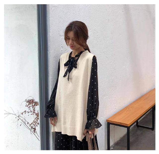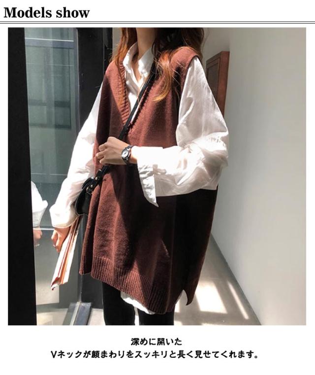 ニットベスト レディース ロングベスト トップス ノースリーブ プルオーバー ジレ セーター Vネック 無地 ゆったり 大きめ 大人可愛い レイヤード 重ね着 カジュアル きれいめ おしゃれ 春 秋 冬 送料無料