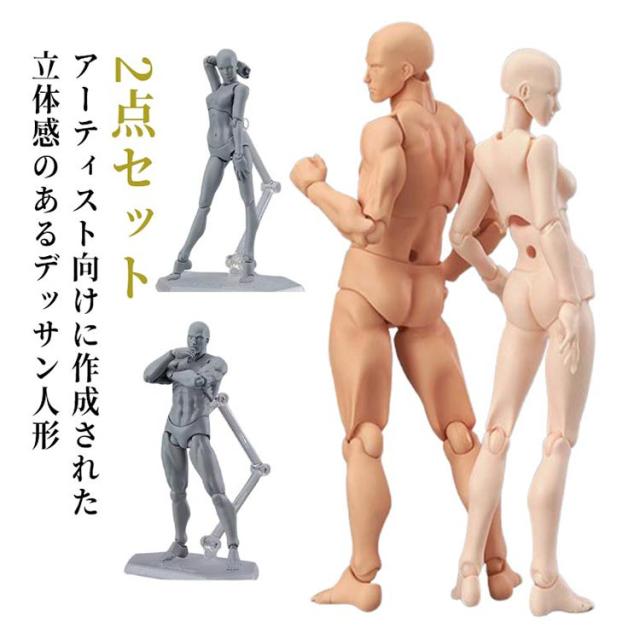 デッサン人形 2点セット 男性 女性 モデル人形 ポージング人形 立体感 デッサンドール 男 女 フィギュア 練習 漫画 作画 ポージング モデル インテリア 小物 模型 小道具 キャラクター 画材 イラスト 絵コンテ 送料無料