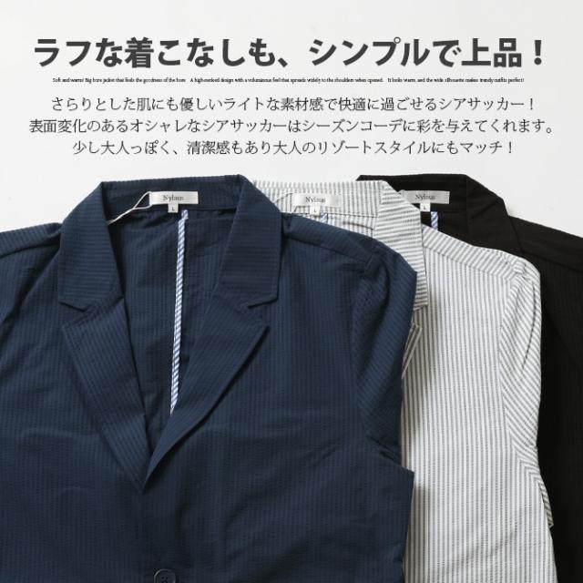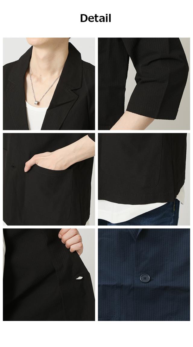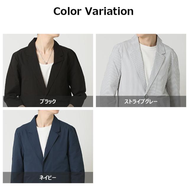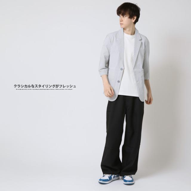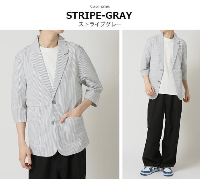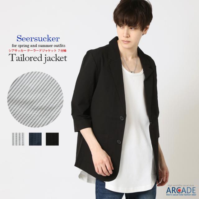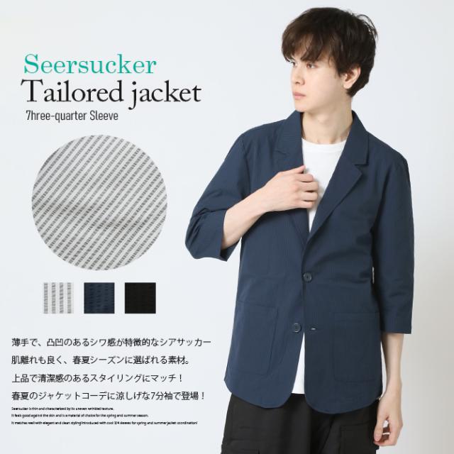 サマージャケット メンズ テーラードジャケット 夏 2B 二つボタン メンズファッション ジャケット シアサッカー 七分袖 7分袖 ストライプ 無地 7分丈 春夏