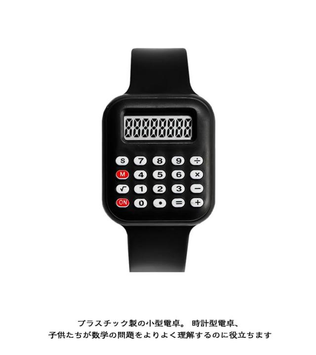| 子供向けに特別に設計されています。男性用の電卓時計は携帯用の電卓です 最大8桁まで表示可能です。 カラーバリエーション豊富♪ 子供用電卓付き腕時計です プラスチック製の小型電卓。 時計型電卓、子供たちが数学の問題をよりよく理解するのに役立ちます onを押すと計算モード、Mを押すと時間モード 誕生日パーティーのギフト、記念品として子供向けのカジュアルな時計です。 | |