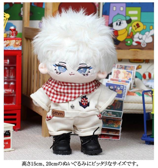 | 高さ20cm!ぬいぐるみ用オールインワン2点セットです。 デニムセットアップで合わせたらぬいちゃんとお揃い出来ちゃうかも?! 高さ15cm、20cmのぬいぐるみにピッタリなサイズです。 | |