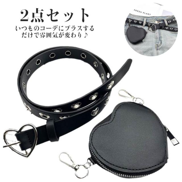飾り ベルト ウエスト かっこいい ハートポーチ 地雷系 ベルトポーチ ポーチ ダンス ハートベルト アクセサリー ベルトポーチ 2点セット 可愛い ハート ベルトポシェット ウエストポーチ ウエストバッグ 個性的