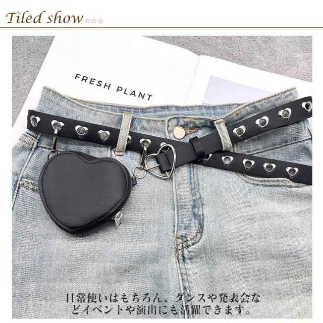 | いつものコーデにプラスするだけで雰囲気が変わり♪ お洒落なハートモチーフベルトとハート型ポーチセット。 きれいめ、カジュアル、地雷系など様々なスタイルに合わせやすく、お洒落な存在。 日常使いはもちろん、ダンスや発表会などイベントや演出にも活躍できます。 | |