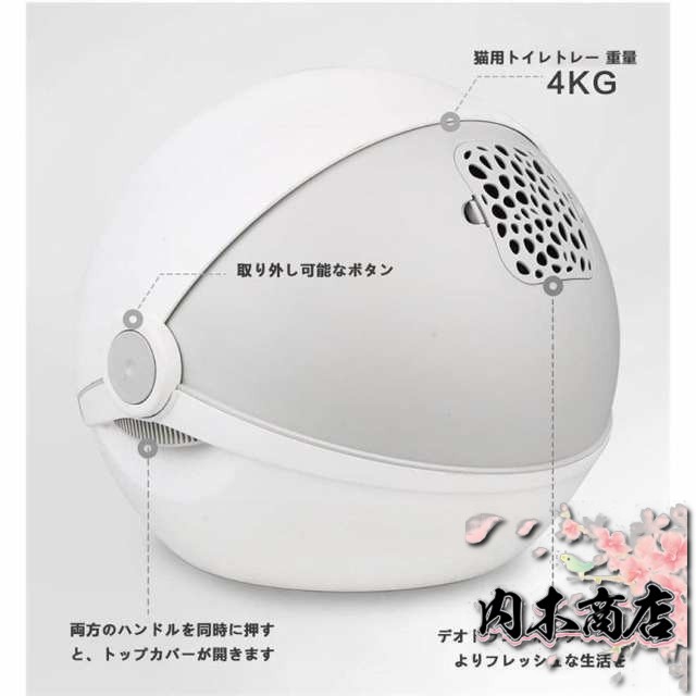 猫 トイレ 自動 ,猫 トイレ 大型 ドーム, 取り外し可能 15kgまでのペット砂に対応、ほとんどの猫砂に対応可能 おしゃれ(グレー)