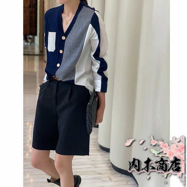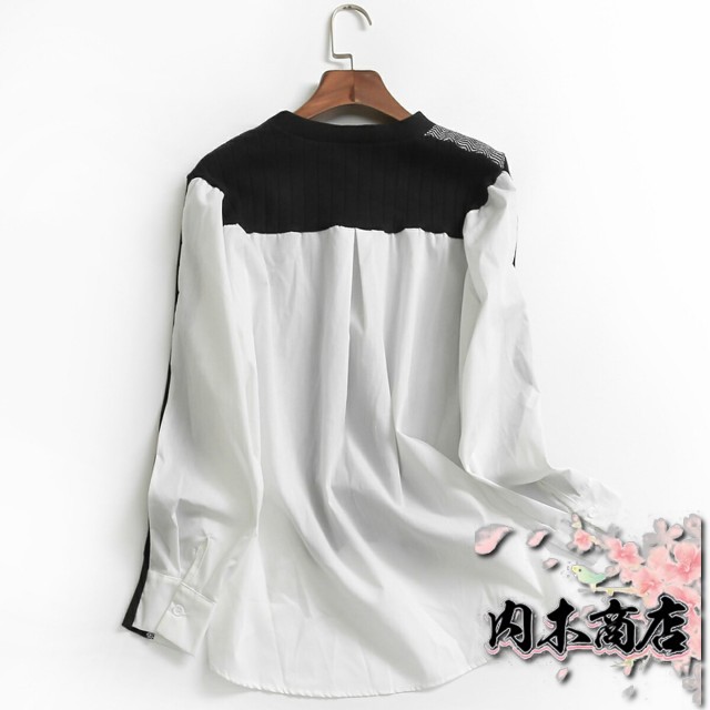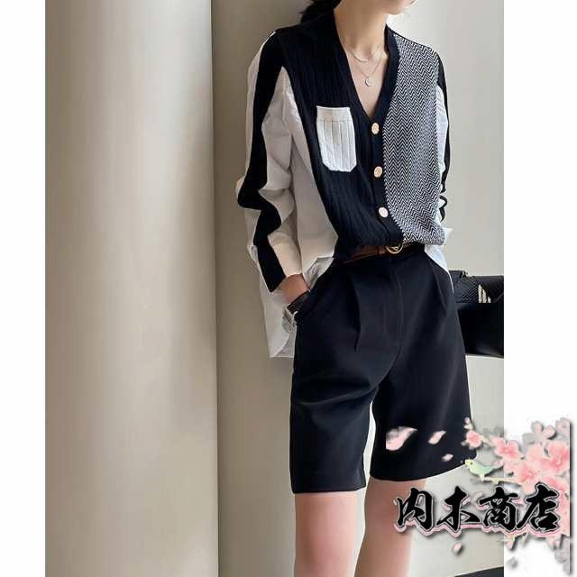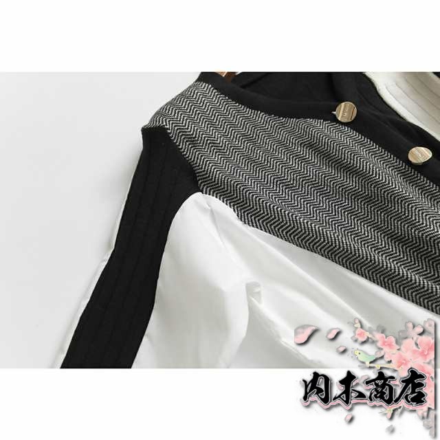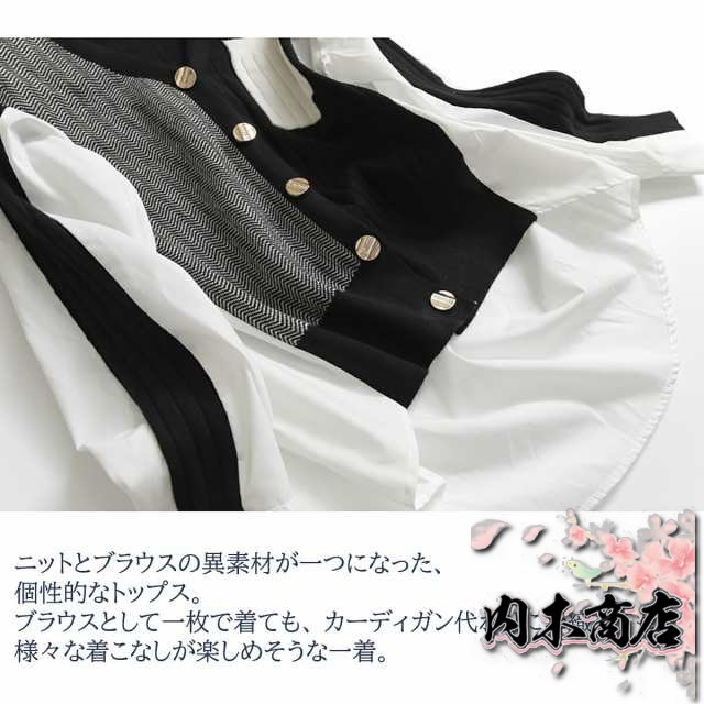 \送料無料/ 個性的 メンズライク ブラウス ニット シャツ カーディガン へリンボーン 異素材 ドッキング レディース トップス 通勤 通