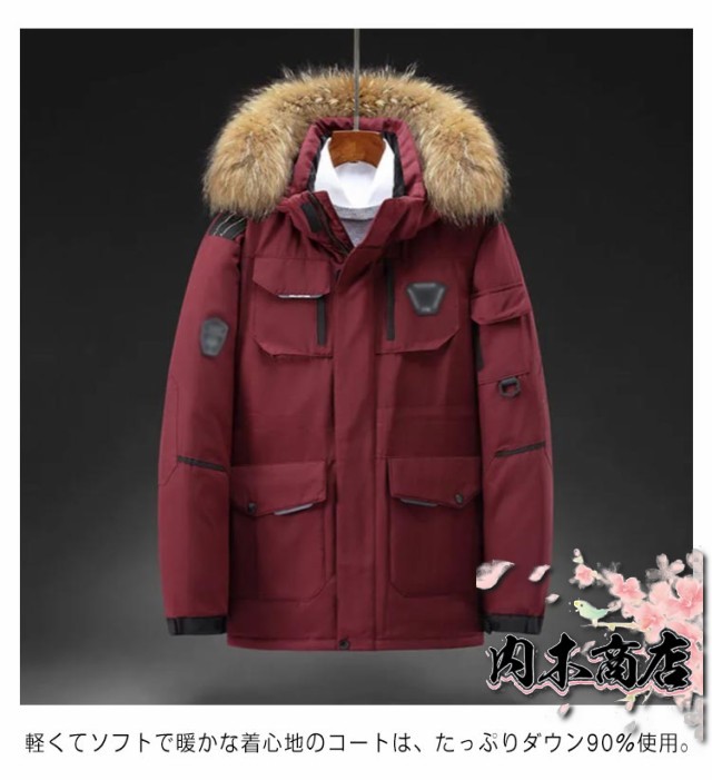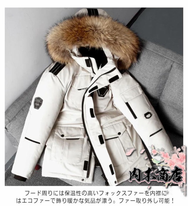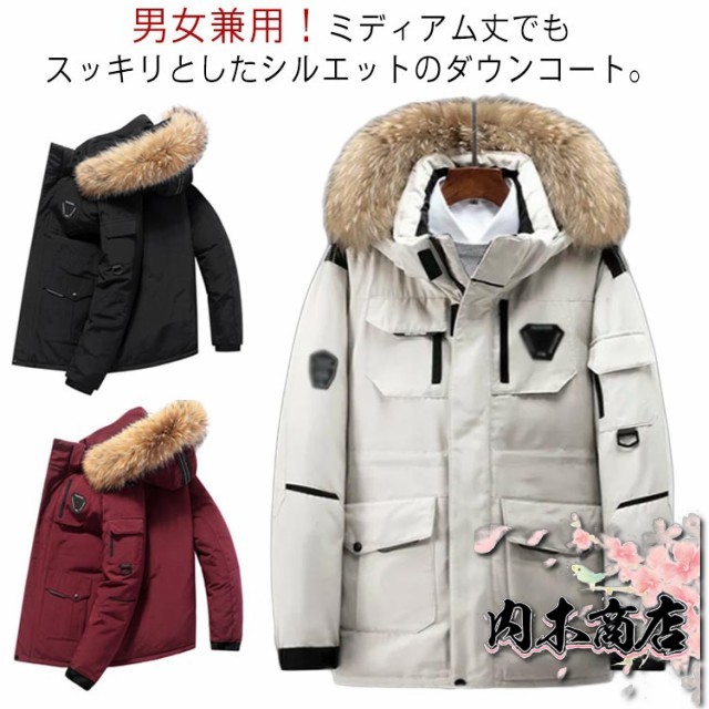 ダウンコート メンズ レディース ダウン90% コート 冬 ダウンジャケット ロングコート 大きめポケット ファー付き ポケット付き ファー 取り外し可能 アウター ジャンパー 前開き 厚手 暖かい 防寒 撥水 2WAY カジュアル 通学 通勤 男女兼用 韓国風 大きいサイズ
