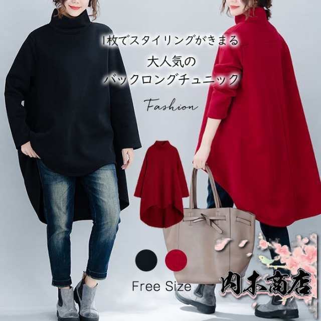 チュニック 長袖 冬 チュニックワンピース ワンピース 裏起毛 秋冬 長袖 チュニックワンピース 大きいサイズ トップス ハイネック あったか Aライン アシンメトリー 体型カバー ゆったり お腹 フレア 冬 春 送料無料 黒 ブラック レッド 20代 30代 40代 50代 黒