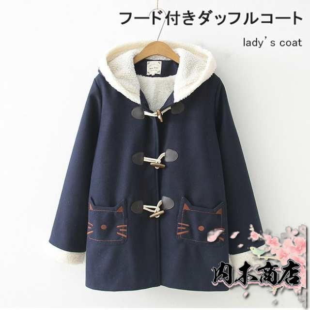 ムートンコート レディース ダッフルコート フード付き 森ガール コート 裏ボア ジャケット 冬 ネコ 裏ボアコート 厚手 暖かい 猫
