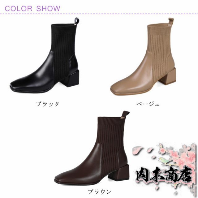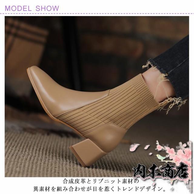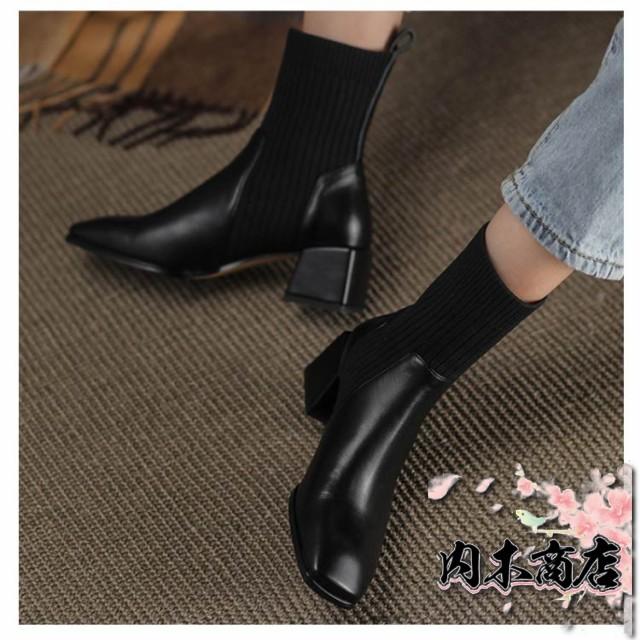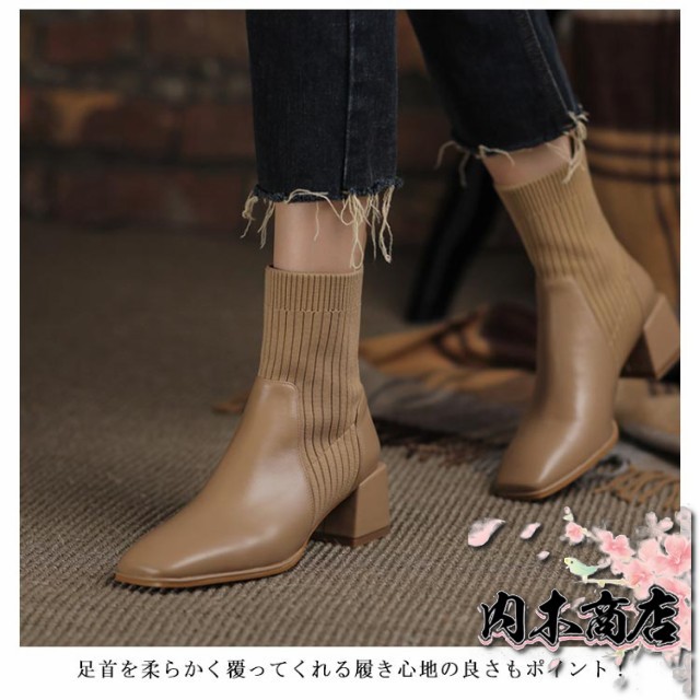 新登場 売上急増中 おしゃれ レディース 通勤 オフィス 22.5cm 秋冬 チャンキーヒール ニットソックスブーツ ショートブーツ スクエアトゥ ソックスブーツ 履きやすい きれいめ 疲れにくい 5.3センチヒール 痛くない リブニット サイドニット