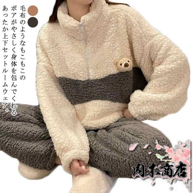 ランキング常連 レディース 学生 防寒 収納便利 女の子 もこもこ 厚手 パジャマ ハイネック パーカー 秋冬 ハーフジップ 部屋着 可愛い 女子 ルームウェア あたっか 配色 プルオーバー ボア ゆったり 上下セット 無地 クマ付き 保温 送料無料