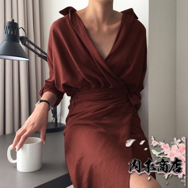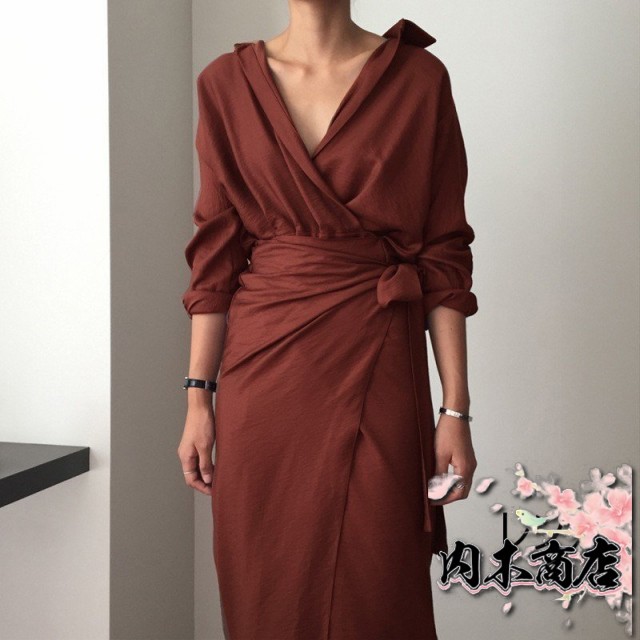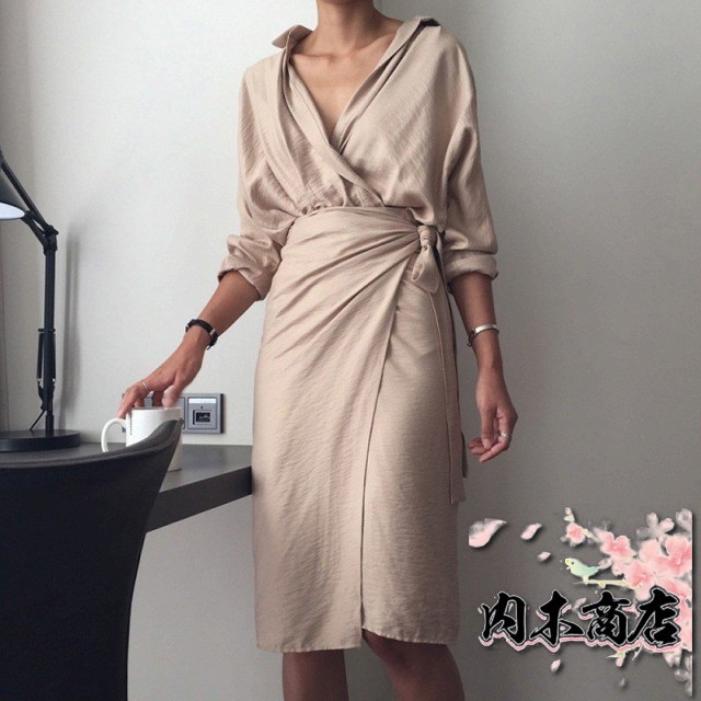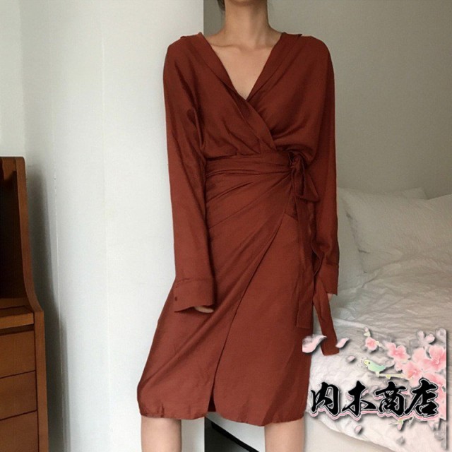 注目ランキング上位 売上急増中 話題商品 オフィス ギフトにも最適 タイトワンピ 在庫わずか Vネック 膝丈 シャツワンピ きれいめ 長袖 無地 カシュクールワンピース ラップワンピ ウエストリボン お買い得プライス クリスマスギフト