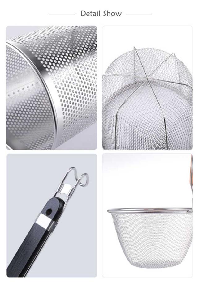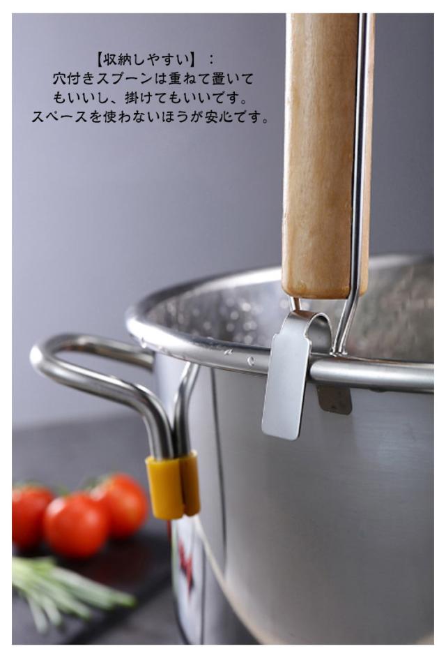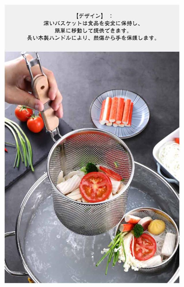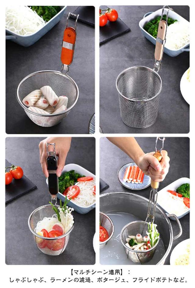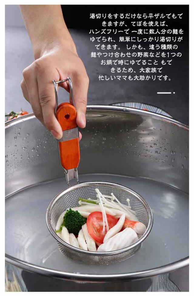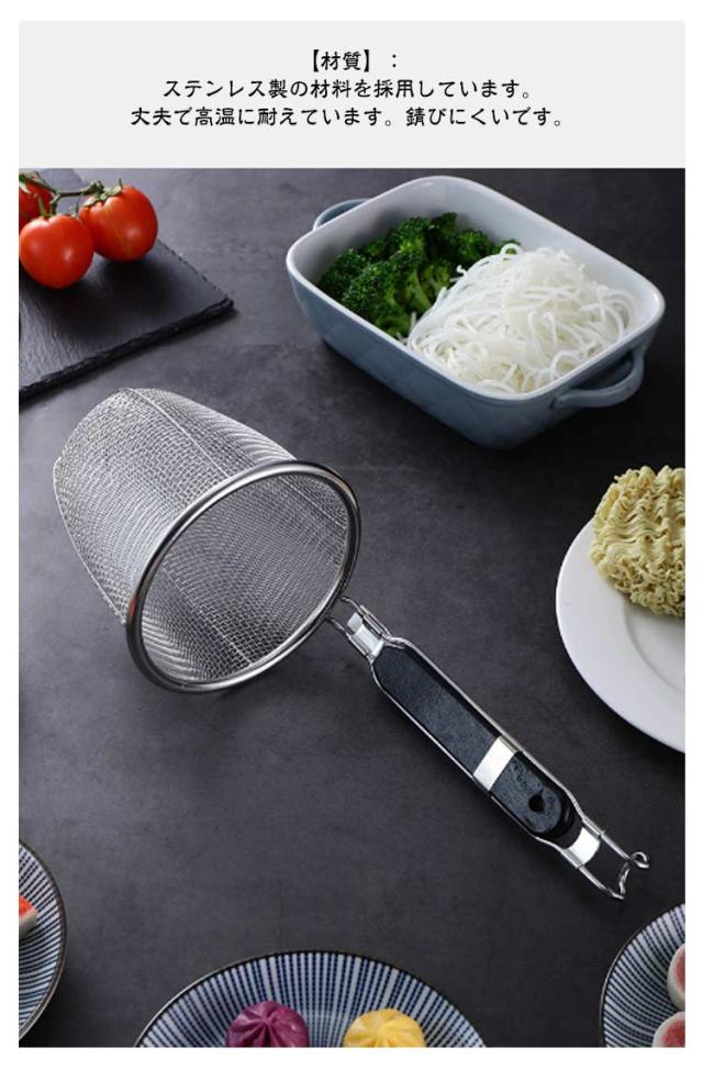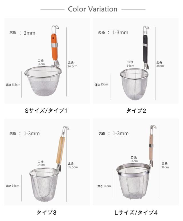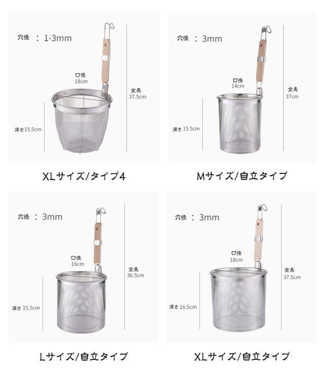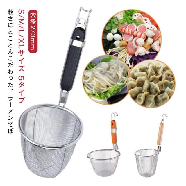 | S/M/L/XLサイズ 5タイプ 穴径2/3mm 軽さにとことんこだわった、ラーメンてぼ 【収納しやすい】:穴付きスプーンは重ねて置いてもいいし、掛けてもいいです。スペースを使わないほうが安心です。 【材質】:ステンレス製の材料を採用しています。丈夫で高温に耐えています。錆びにくいです。 【デザイン】 :深いバスケットは食品を安全に保持し、簡単に移動して提供できます。長い木製ハンドルにより、熱傷から手を保護します。 湯切りをするだけなら平ザルでもできますが、てぼを使えば、ハンズフリーで 一度に数人分の麺をゆでられ、簡単にしっかり湯切りができます。 しかも、違う種類の麺やつけ合わせの野菜などを1つのお鍋で時にゆでること もできるため、大家族で忙しいママも大助かりです。 【マルチシーン適用】:しゃぶしゃぶ、ラーメンの濾過、ポタージュ、フライドポテトなど。 | |
