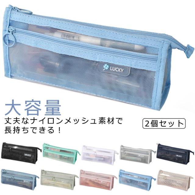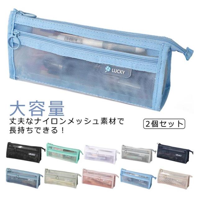 メッシュ クリアペンケース 韓国 透明 2個セット ペンポーチ 社会人 筆箱 2個セット 大容量 大学生 ペンケース 筆箱 メッシュペンケース かわいい 高校生 女子 男子 薄型 中学校受験 中学生 小学校 受験 学生 小物入れ シンプル