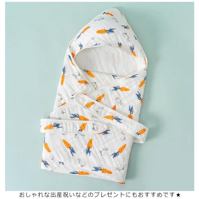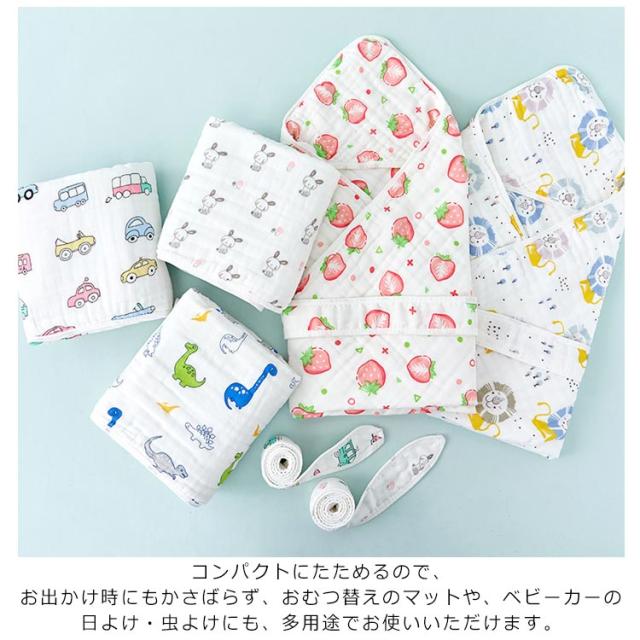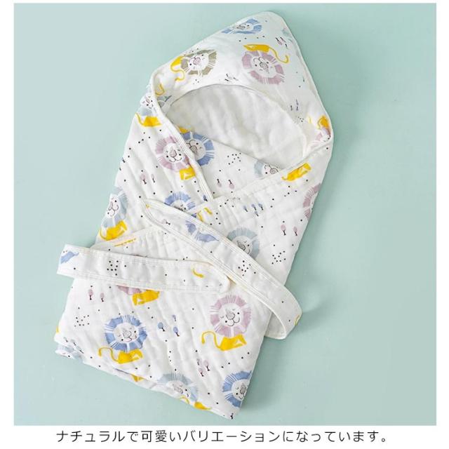 | 【ベルト付き】【六層ガーゼ素材】 赤ちゃんのお肌にやさしい六層ガーゼ綿素材のおくるみです♪ ふんわり軽くて柔らかい、通気性・吸湿性に優れており、デリケートな赤ちゃんのお肌を優しく包んでくれます。 おくるみとしてはもちろん、シーツや肌掛けとしても◎ 赤ちゃんを適度な温度に保ってくれます。 コンパクトにたためるので、お出かけ時にもかさばらず、おむつ替えのマットや、ベビーカーの日よけ・虫よけにも、多用途でお使いいただけます。 洗濯機で洗えるので、お手入れも楽々。軽くてかさばらず、洗濯後の乾きも早いので、いつも清潔にお使いいただけます。 ナチュラルで可愛いバリエーションになっています。 おしゃれな出産祝いなどのプレゼントにもおすすめです★ | |