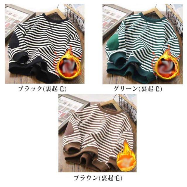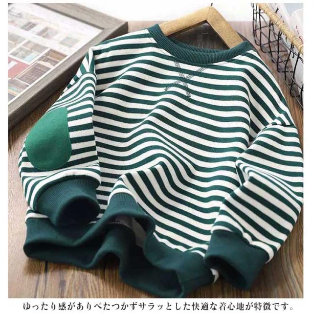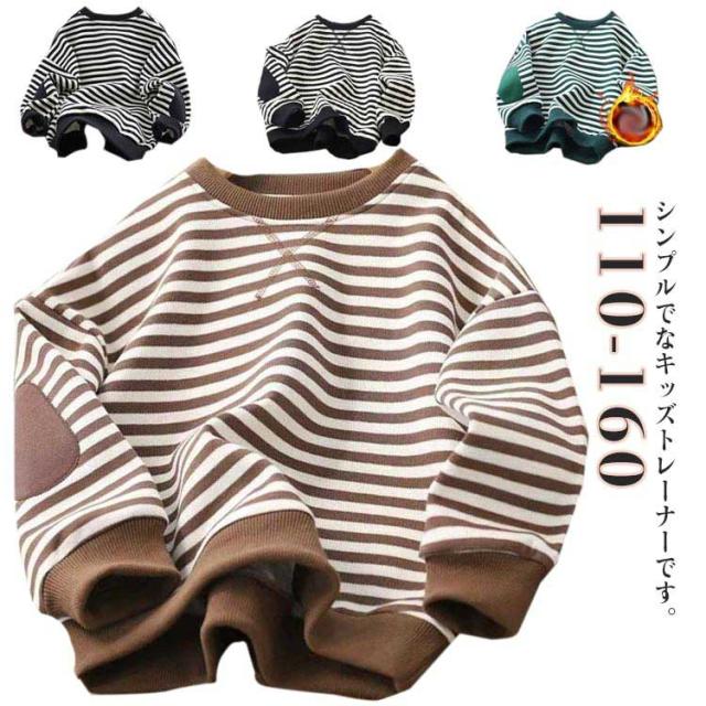 クルーネック 長袖トップス キッズ 子供服 スウェット 薄手トレーナー 小学生 男の子 重ね着 トレーナー 女の子 中学生 ゆったり パーカー 薄手/裏起毛 ボーダー柄 大きいサイズ おしゃれ 通学