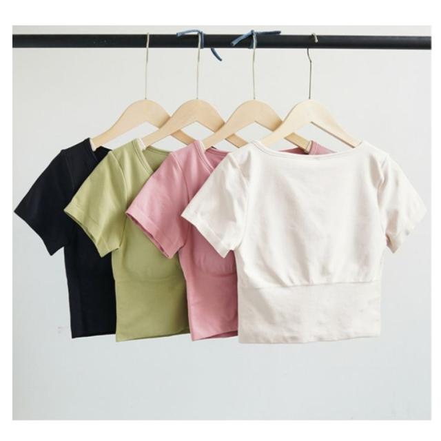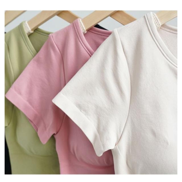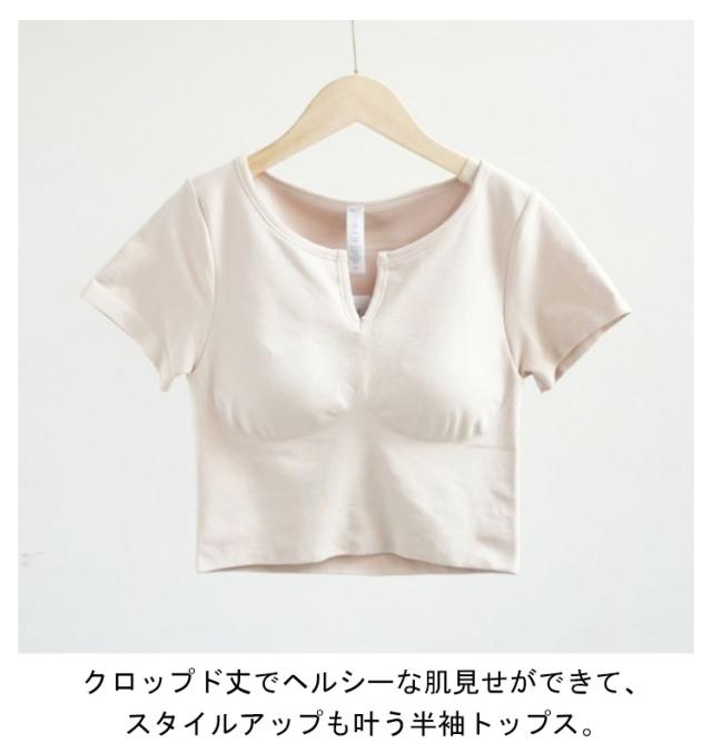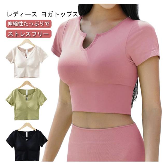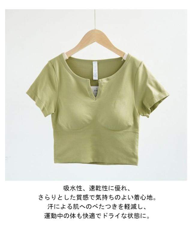 ヨガウェア へそ出し 半袖 クロップド丈 無地 トップス ヨガウェア スポーツ セットインスリーブ シンプル 無地 おしゃれ かわいい 韓国 薄手 ウエスト 細見え ホットヨガ フィットネス レディース ピラティス ストレッチ ダンス エアロビクス 運動着 吸水