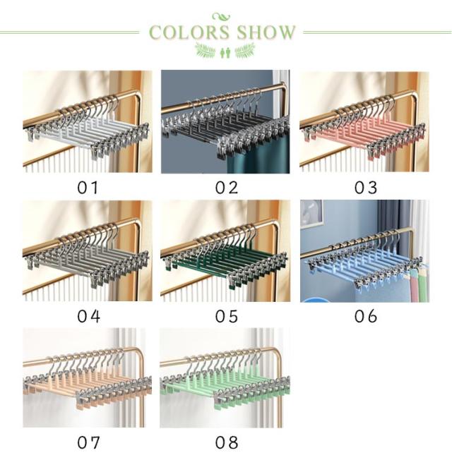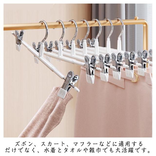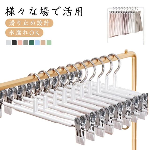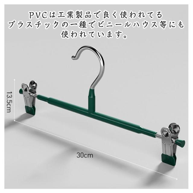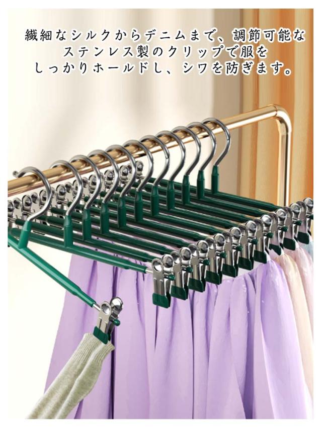 | 【滑り止め設計】繊細なシルクからデニムまで、調節可能なステンレス製のクリップで服をしっかりホールドし、シワを防ぎます。 ピンチ先端には生地に優しいすべり止めが付いており、衣類を優しく挟んでくれて、滑り落ちなど心配がありません。 ズボン、スカート、マフラーなどに適用するだけでなく、水着とタオルや雑巾でも大活躍です。 【良い耐久性】本体はステンレス製で耐久性が高く、長く使えます。ハンガーはメッキ加工をしていますので、錆びにくいです。 厳選された素材、より強い耐荷重性、重い服でも使用可能です。 【水濡れOK】PVCは工業製品で良く使われてるプラスチックの一種でビニールハウス等にも使われています。 このことから、耐水性と耐候性に優れていることがわかります。 【様々な場で活用】スカートハンガーの2つのクリップは左右に移動が可能なので、掛けたい物のサイズに合わせて調整できます。 調整可能な多機能ハンガーは男性や女性、老人や子供の衣類に全部対応でき、家族多い家庭にとって不可欠なハンガーです。 | |