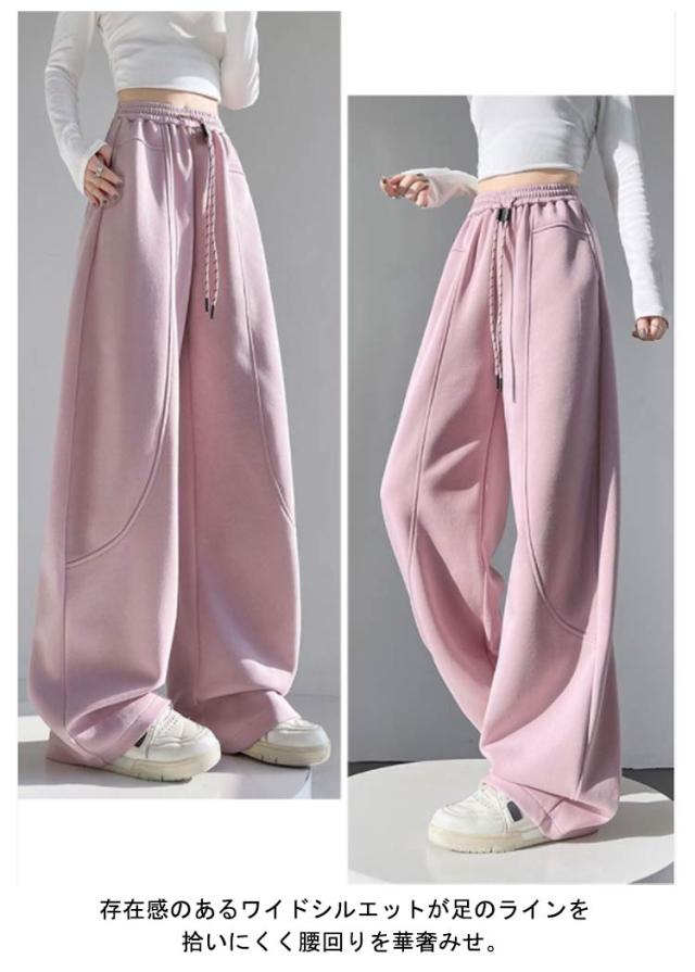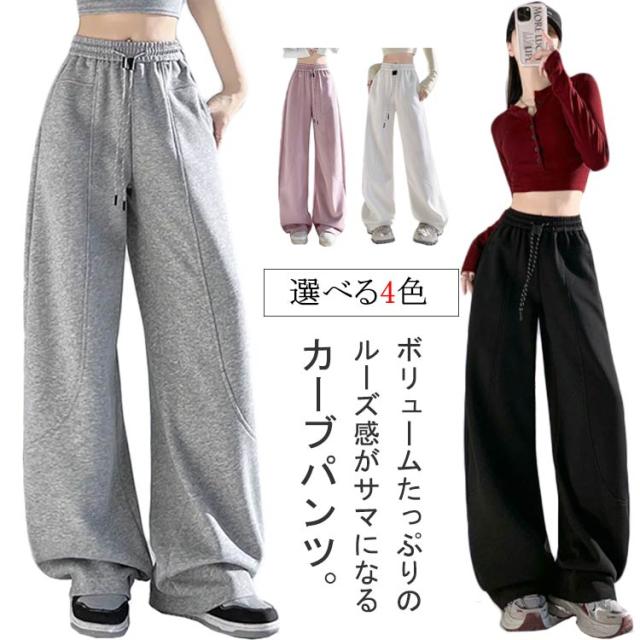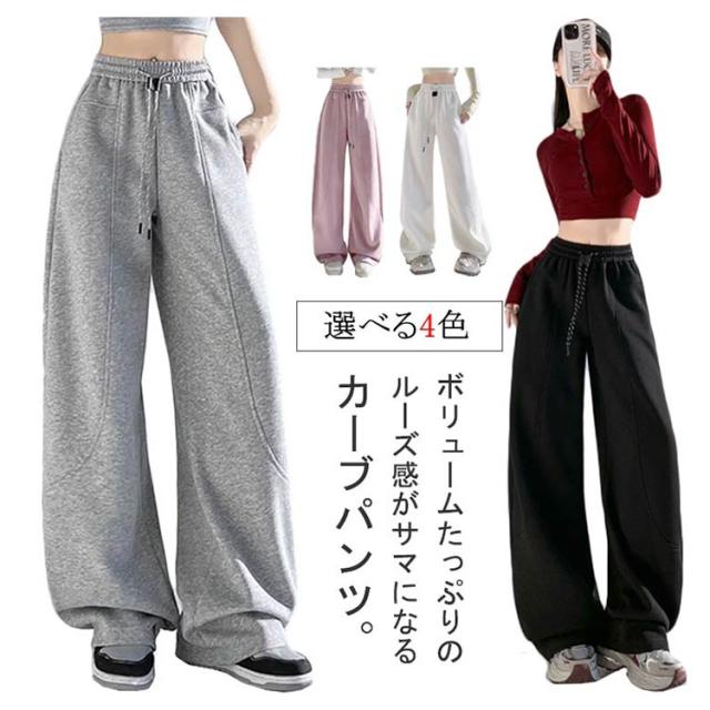 カーブパンツ ワイドパンツ バレルレッグ レディース 体型カバー スウェットパンツ ポケット付き 部屋着 おしゃれ ウエストゴム ゆったり スウェットパンツ 美脚 カジュアル ストリート