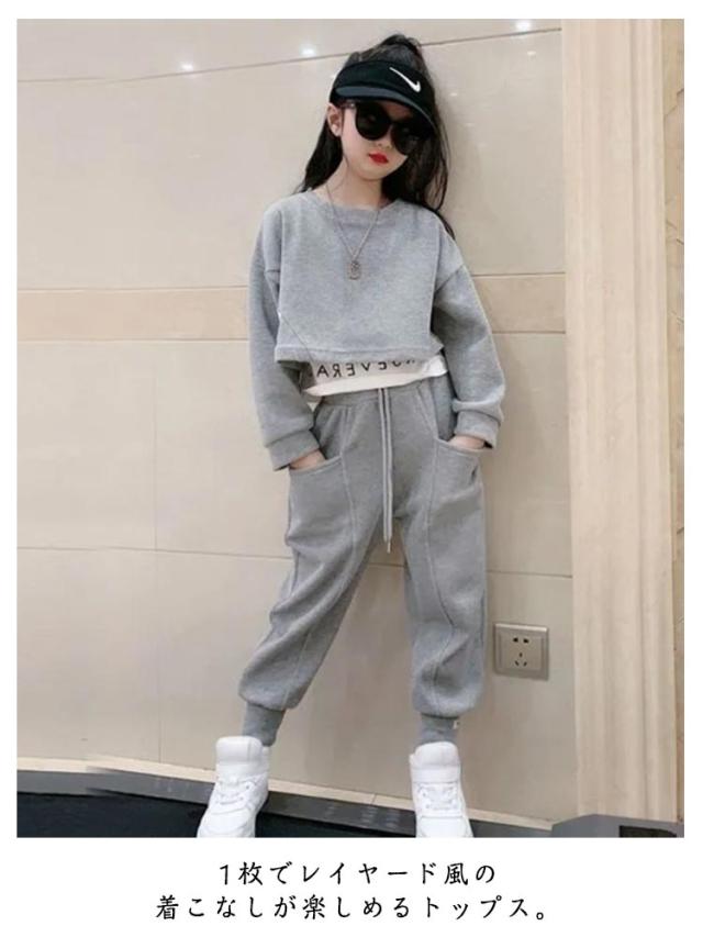韓国子供服 女の子 セットアップ 春服 ジャージ 2点セット キッズ 長袖 子供ジャージ 子供服 子供ジャージ 男の子 上下セット トップス レイヤード風 長ズボン 秋服 ダンス衣装 トレーナー スポーツウェア HIPPOP ルームウェア おしゃれ 可愛い