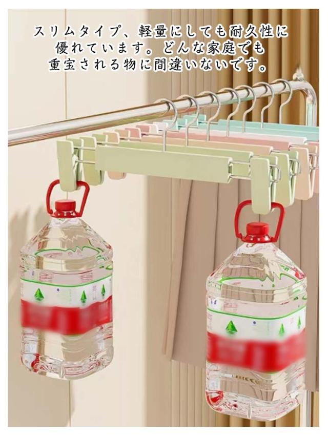 | ズボンハンガー 10本セット。 強力なクリップで重たい洗濯物やボトムスでも落ちずにしっかり挟んでくれます。 ハンガー自体が厚くないため、スペースを最大限に活用し、衣類の整理、収納が楽です。 スリムタイプ、軽量にしても耐久性に優れています。どんな家庭でも重宝される物に間違いないです。 ズボン、スカート、マフラーなどに適用するだけでなく、水着とタオルや雑巾でも大活躍です。 | |