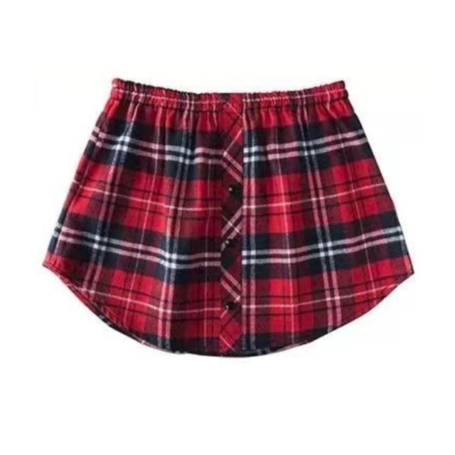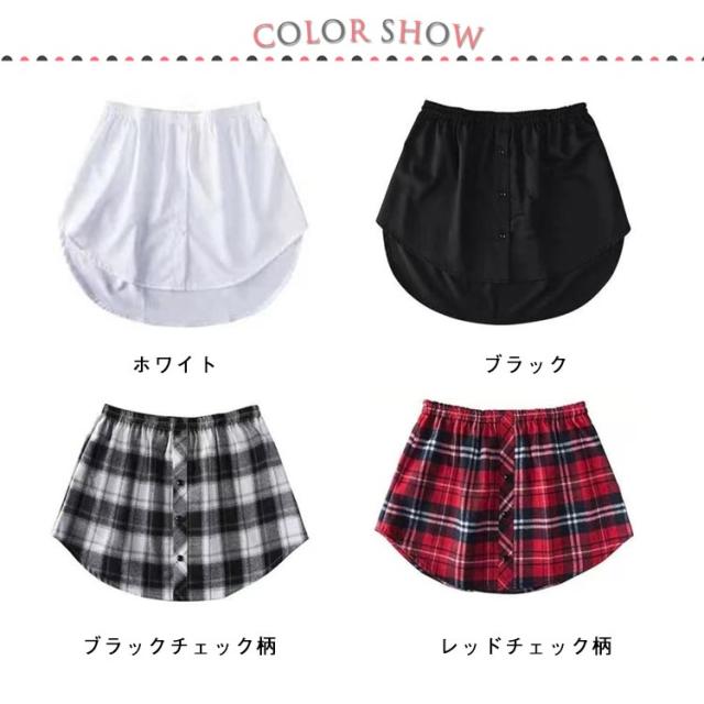 ゴム シャツ 重ね着風 腹巻き 付け裾 インナー レイヤード フェイクレイヤード 体型カバー レディース Tシャツ つけ裾 チュニック 大きいサイズ 裾フリル 腹巻 着け裾 ロング スリット チェック チェック柄 お尻が隠れる 春 冬