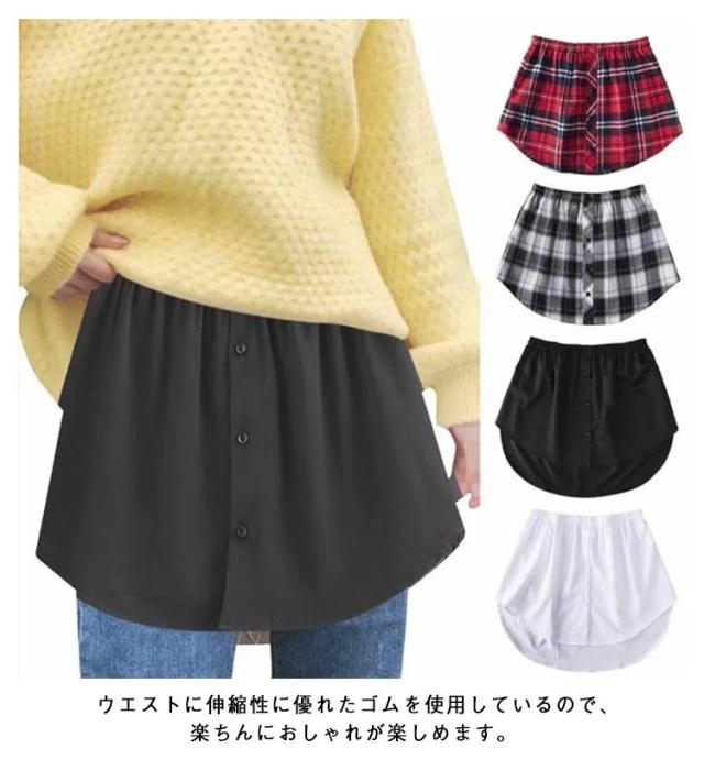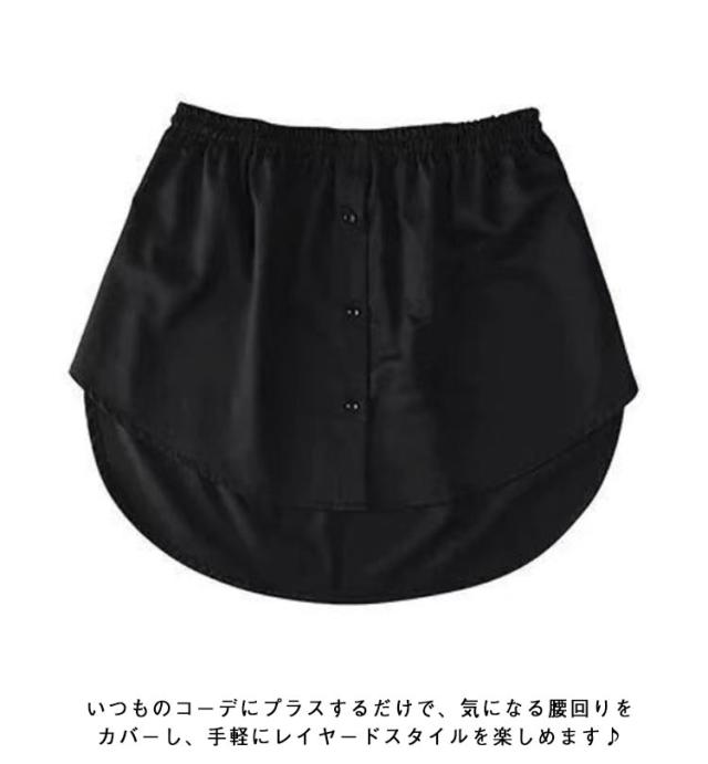 | 履くだけでレイヤードコーデが完成する便利なつけ裾! M-2XLまでご用意し、男女兼用ファッション小物! ウエストに伸縮性に優れたゴムを使用しているので、楽ちんにおしゃれが楽しめます。 お好みの裾の長さに調整して、ウエストの位置を決めれるので、様々な丈のトップスに対応できます。 いつものコーデにプラスするだけで、気になる腰回りをカバーし、手軽にレイヤードスタイルを楽しめます♪ 抜け感をつくるスリットデザイン。サイドに入ったスリットが洒落感をプラスし、動きやすさも確保◎ | |