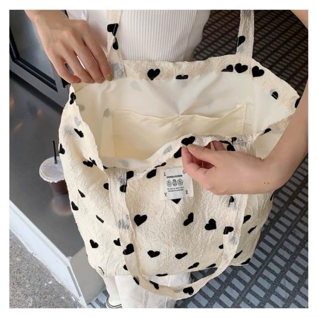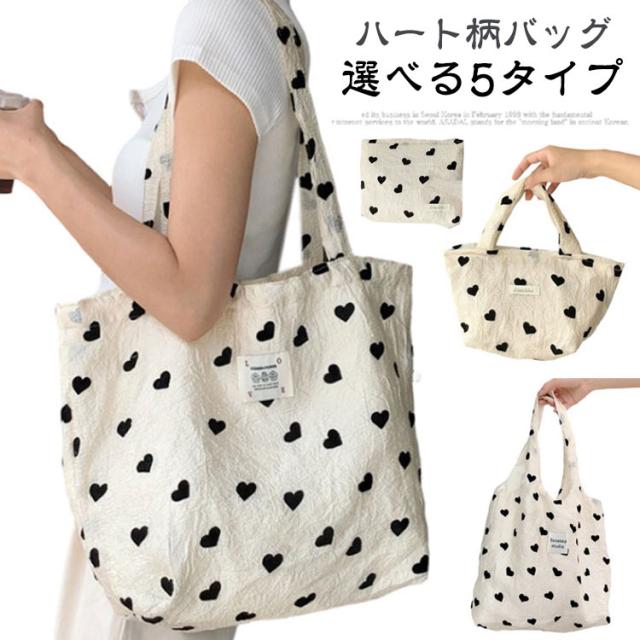 選べる5タイプ トートバッグ 化粧ポーチ 大容量 舟型 サブバッグ ポーチ ハート柄バッグ お買い物 エコバッグ ハート柄 折りたたみバッグ バッグ 軽量 たためる シンプル 可愛い 韓国 おしゃれ マチ モノトーン 鞄 トート ショルダーバッグ