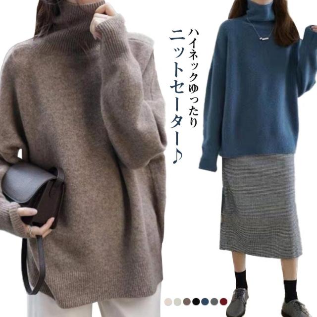 ハイネックニット ハイネックニット 長袖 レディース トップス プルオーバー タートルネック 体型カバー 大人女性 ハイネックニット 肉厚 ゆったり 秋 大きいサイズ ハイネック リブ 無地 シンプル ナチュラル 通勤 冬 タートルニット 通学 重ね着